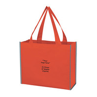 Made Of 80 Gram Laminated Non-Woven, coated water-resistant polypropylene . Patented reflective piping accents . Great for grocery stores, markets, book stores and more. Features 6-inch gusset . Reusable . Recyclable . 24-inch handles. Dimensions: 16 1/4W x 13H x 6D. Please choose two or three lines only from the following options: Dealer Name, 1st Line of Address, Phone Number, Website, Social Media Handle/URL. Or upload your logo only. Minimum order quantity 150 pieces. Order will ship in 7-10 business days, does not include transit time. Current pricing includes one color/one location imprint. Pricing will vary based on logo provided, quantity of colors and number of locations requested.